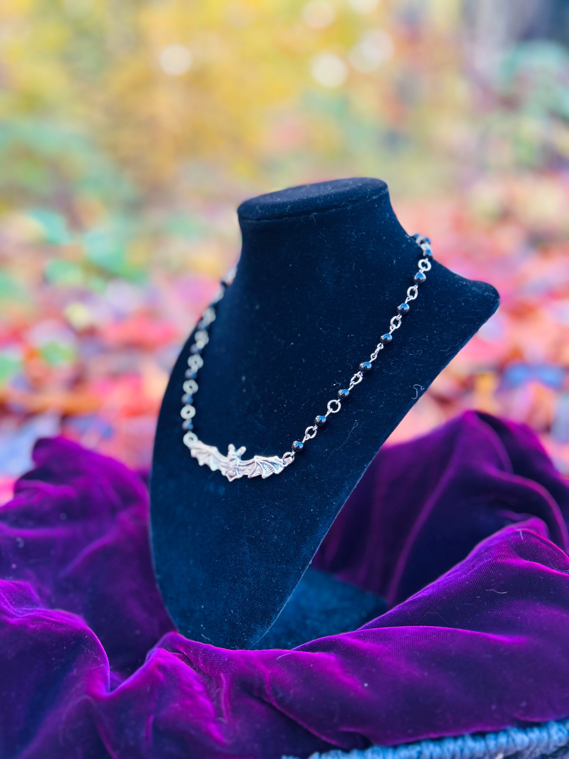 Handmade Silver Black Obsidian Bat Necklace!!