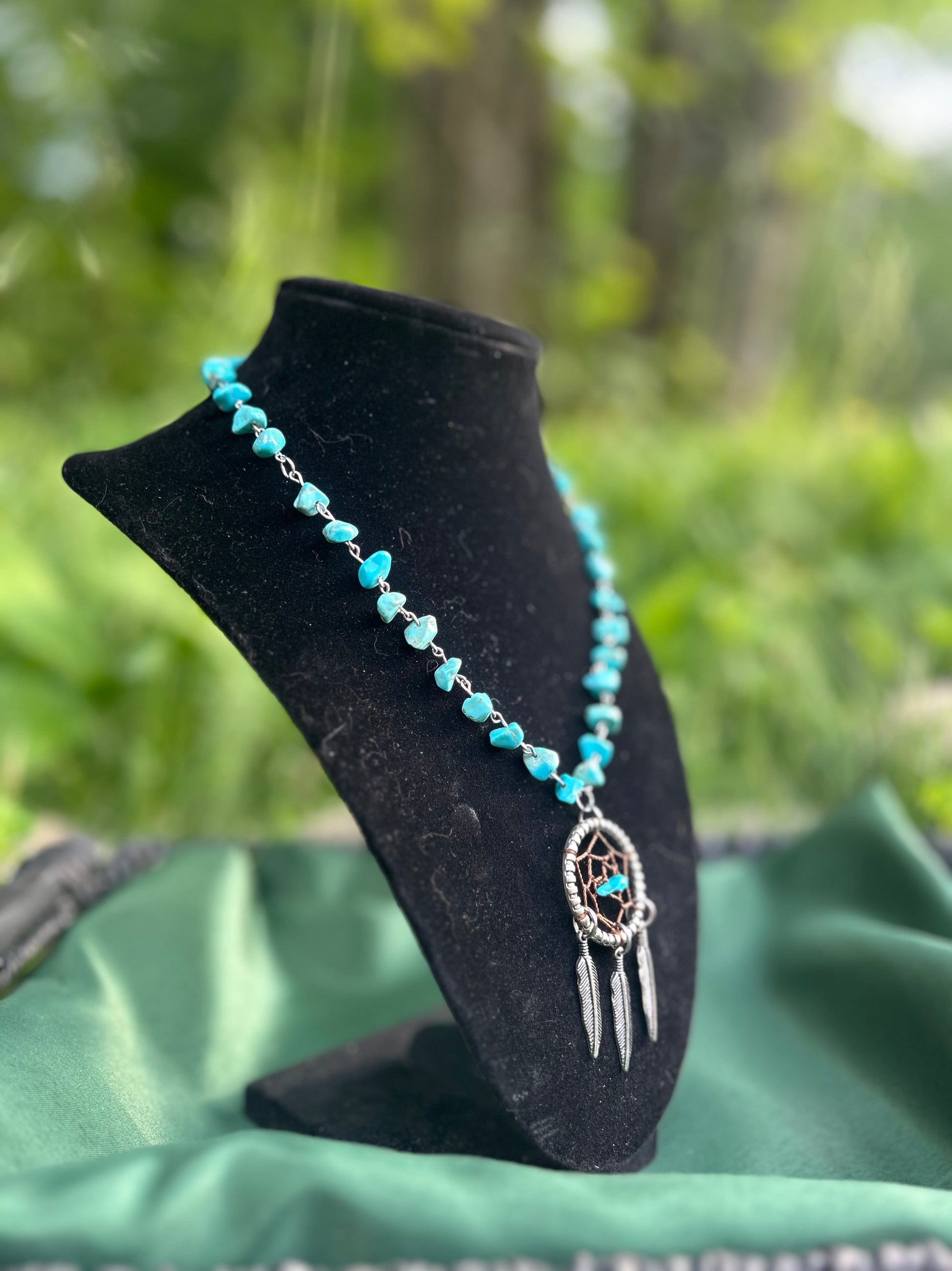 Handmade Silver Turquoise Dream Catcher Necklace!